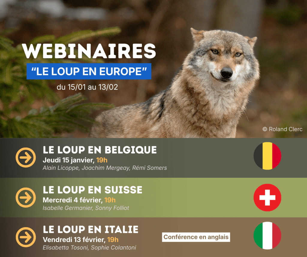 Dans le cadre du MOOC « Grands Carnivores », FERUS vous invite à un cycle de 3 webinaires pour mieux comprendre la présence et les enjeux du loup en Europe. Ces webinaires sont gratuits et ouverts à toutes et tous !