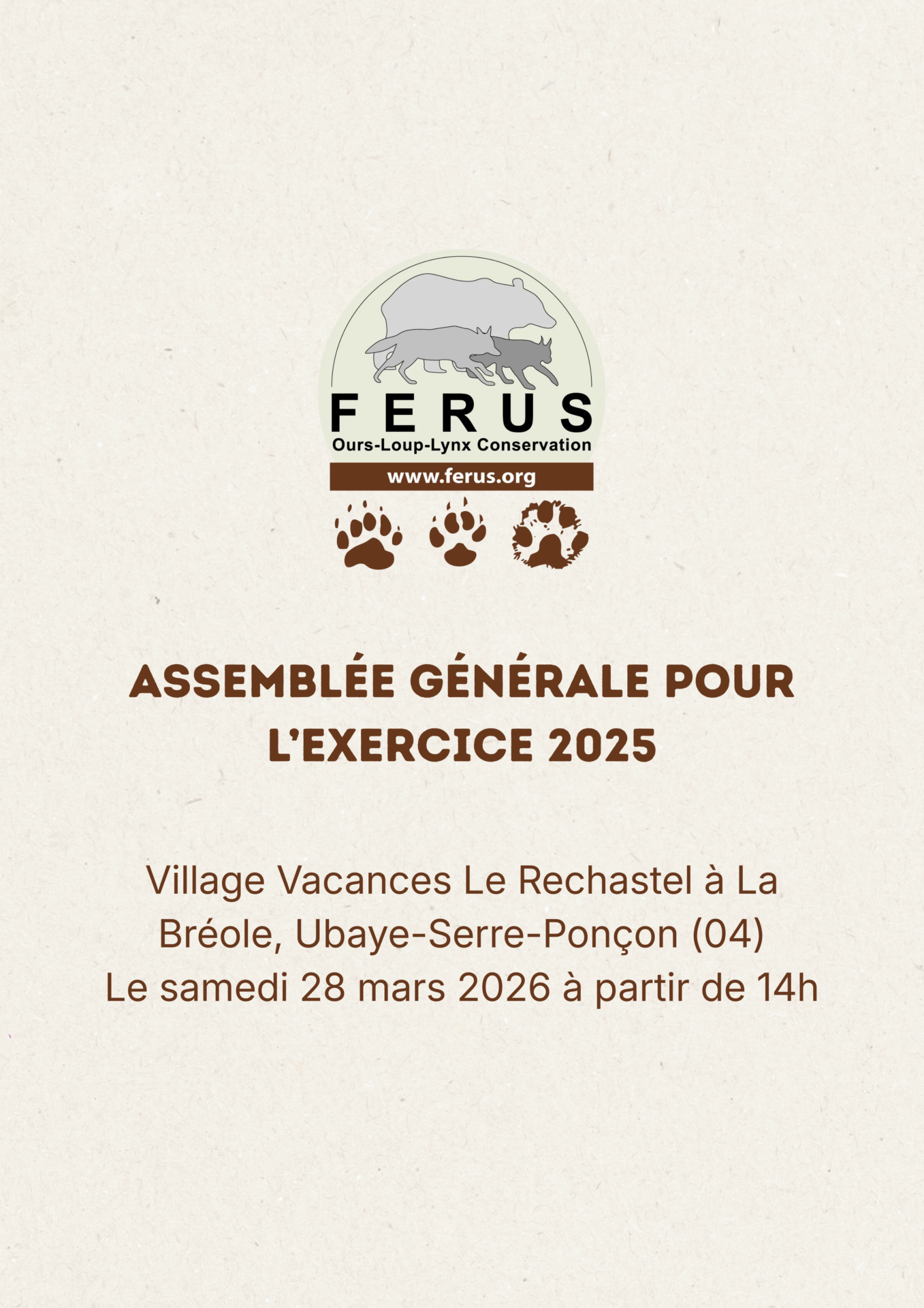 Assemblée Générale pour l’exercice 2025 de FERUS — samedi 28 mars 2026 ◊ Ubaye-Serre-Ponçon (04)