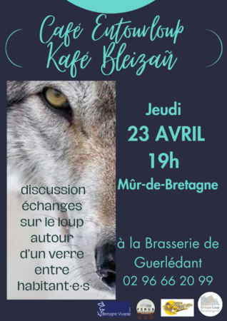 Venez discuter et échanger sur le loup autour d’un verre ou d’un repas le jeudi 23 avril 2026 ! Rendez-vous pour un nouveau café Entourloup (ou Kafe Bleizañ) à 19h à la Brasserie de Guerlédan à Mur-de-Bretagne (Guerlédan, 22) !